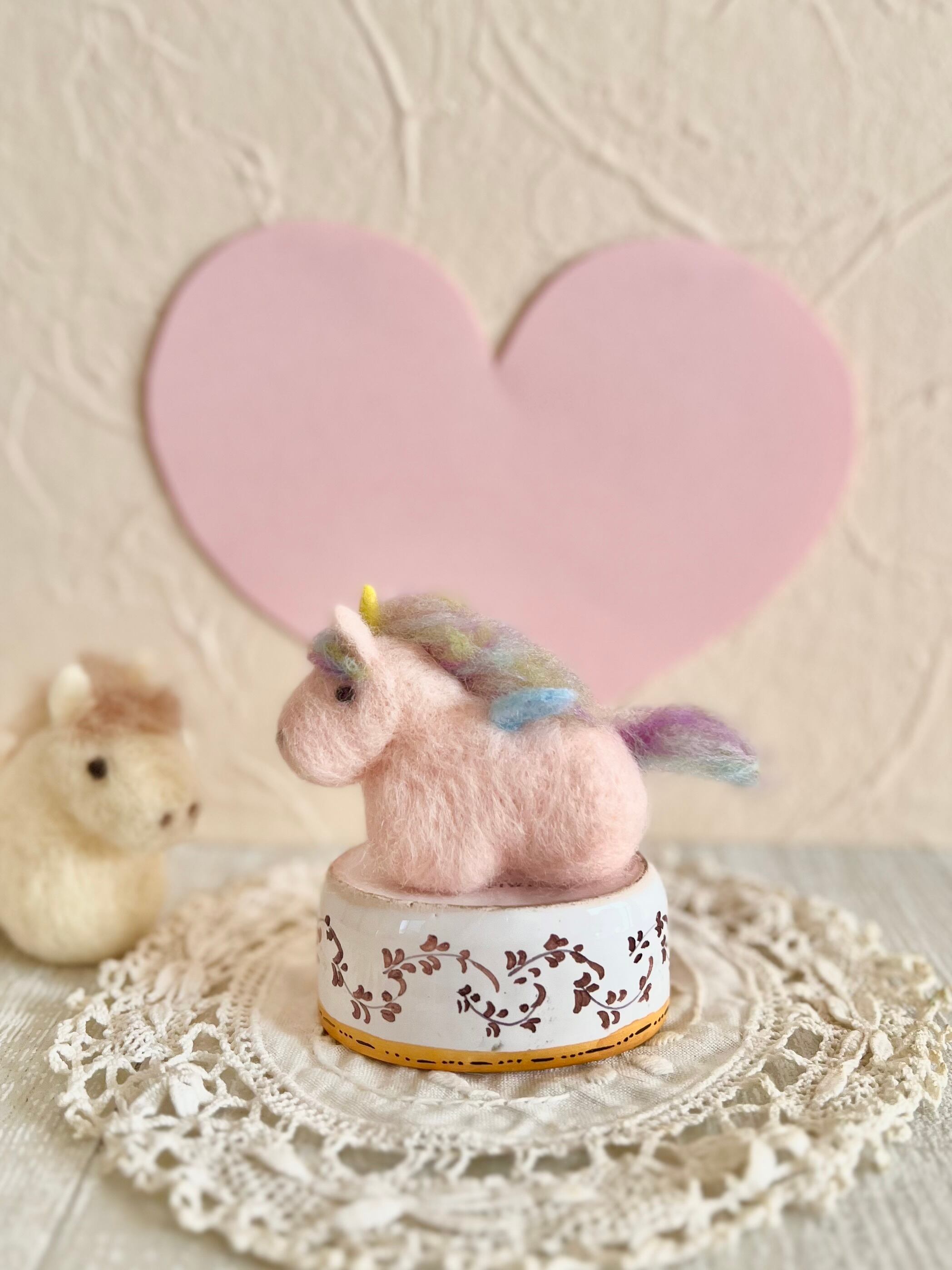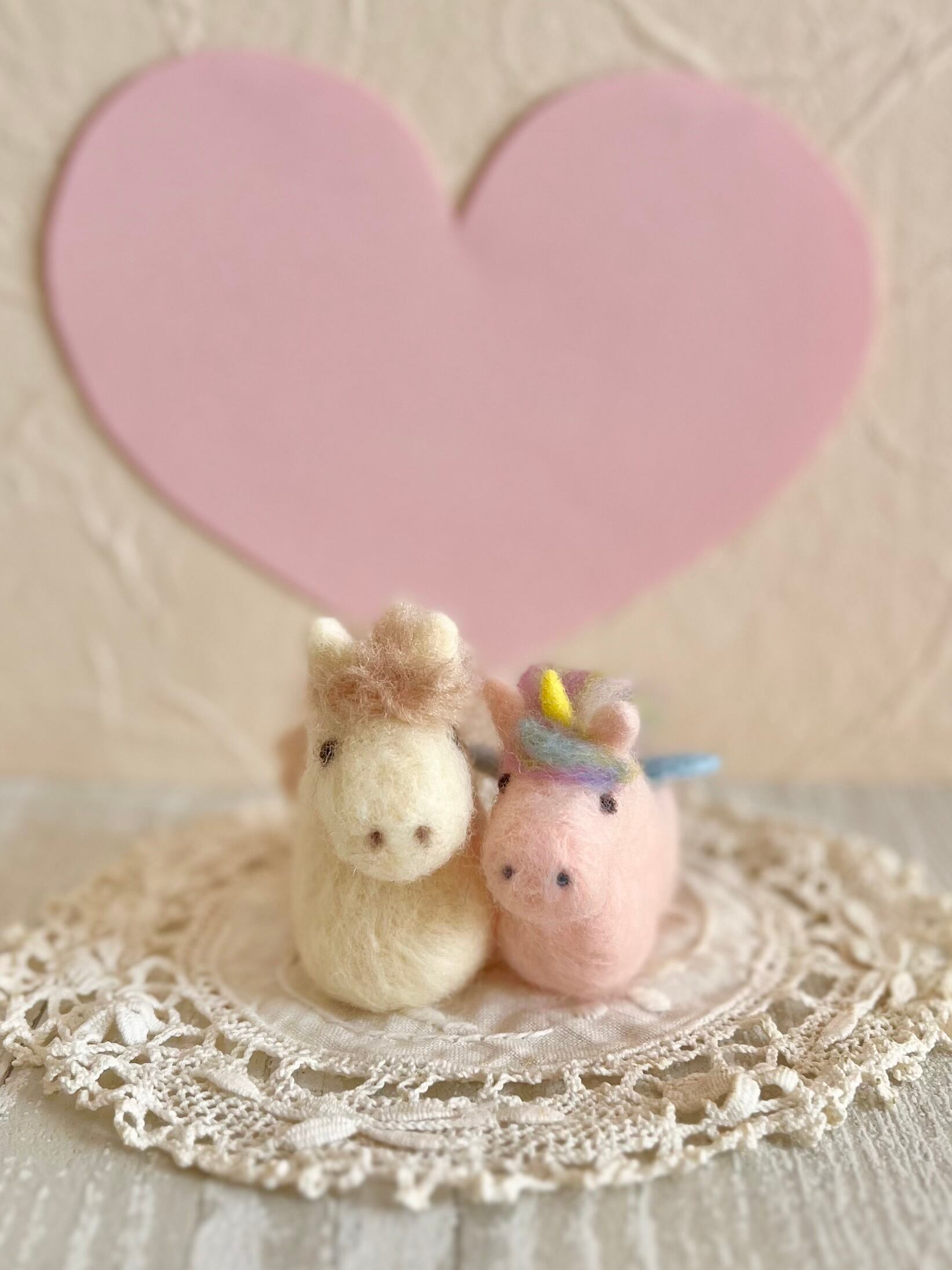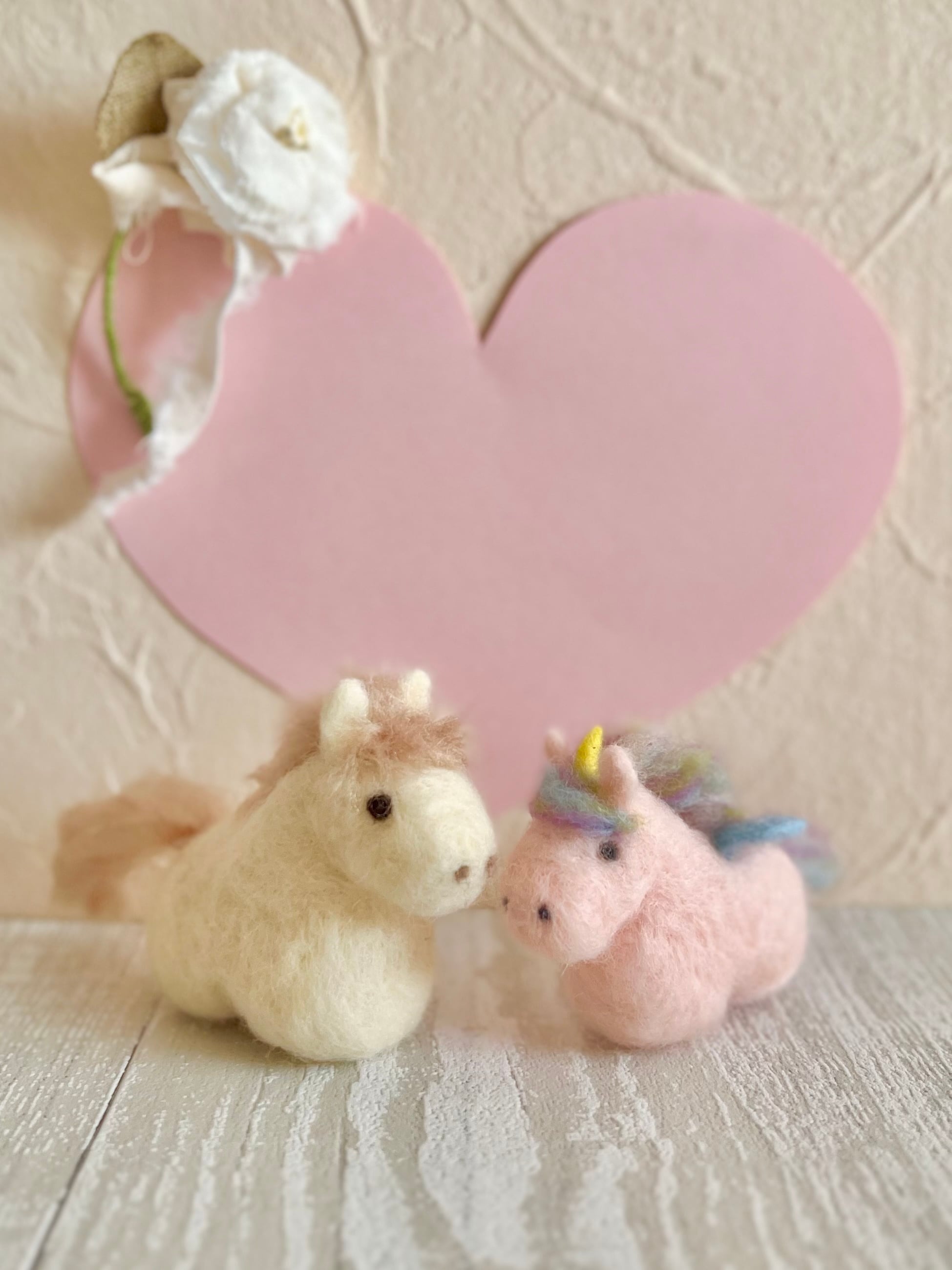 白馬のポンタkunと淡いピンクのユニコーン、ユニchanです。