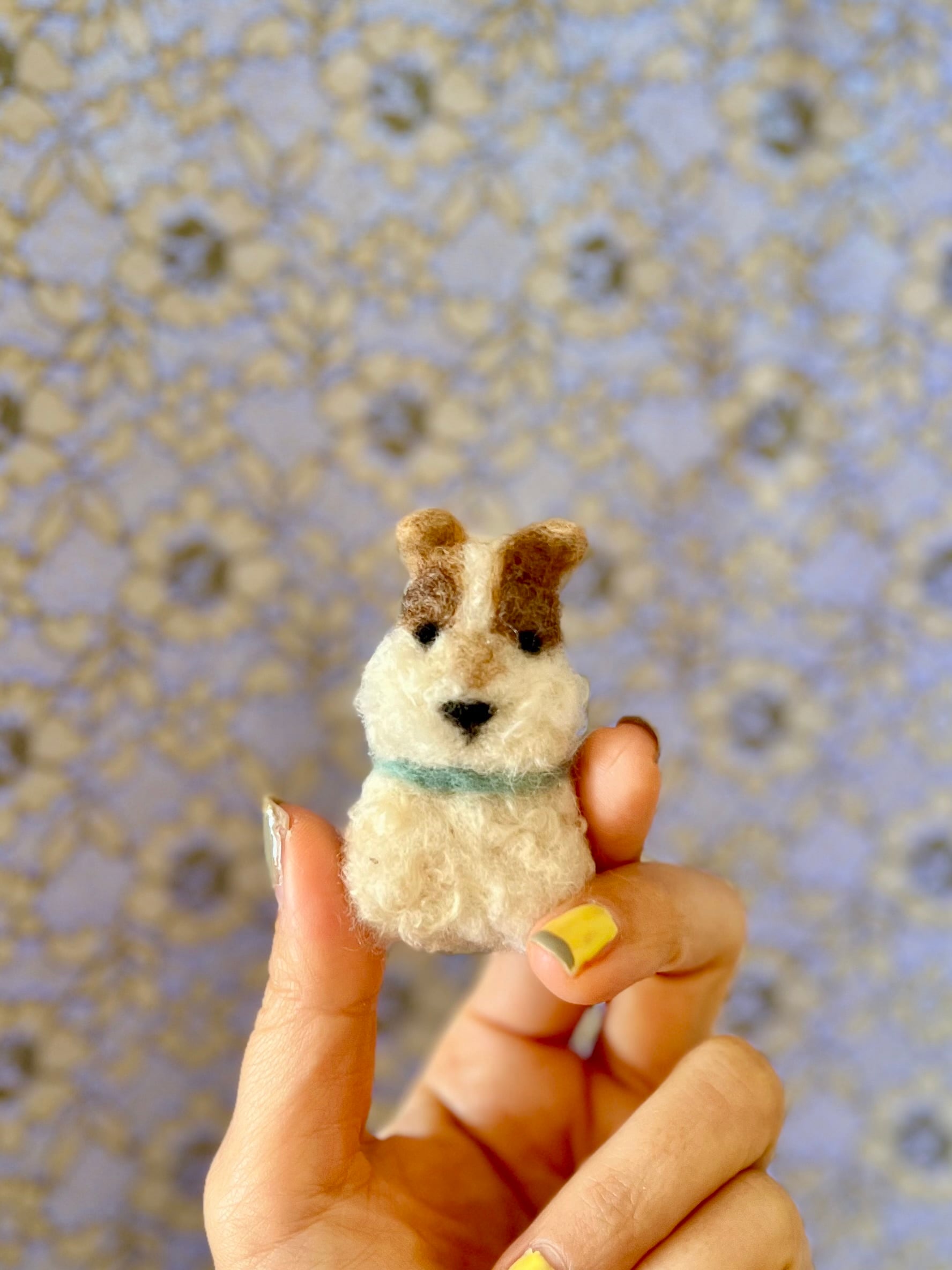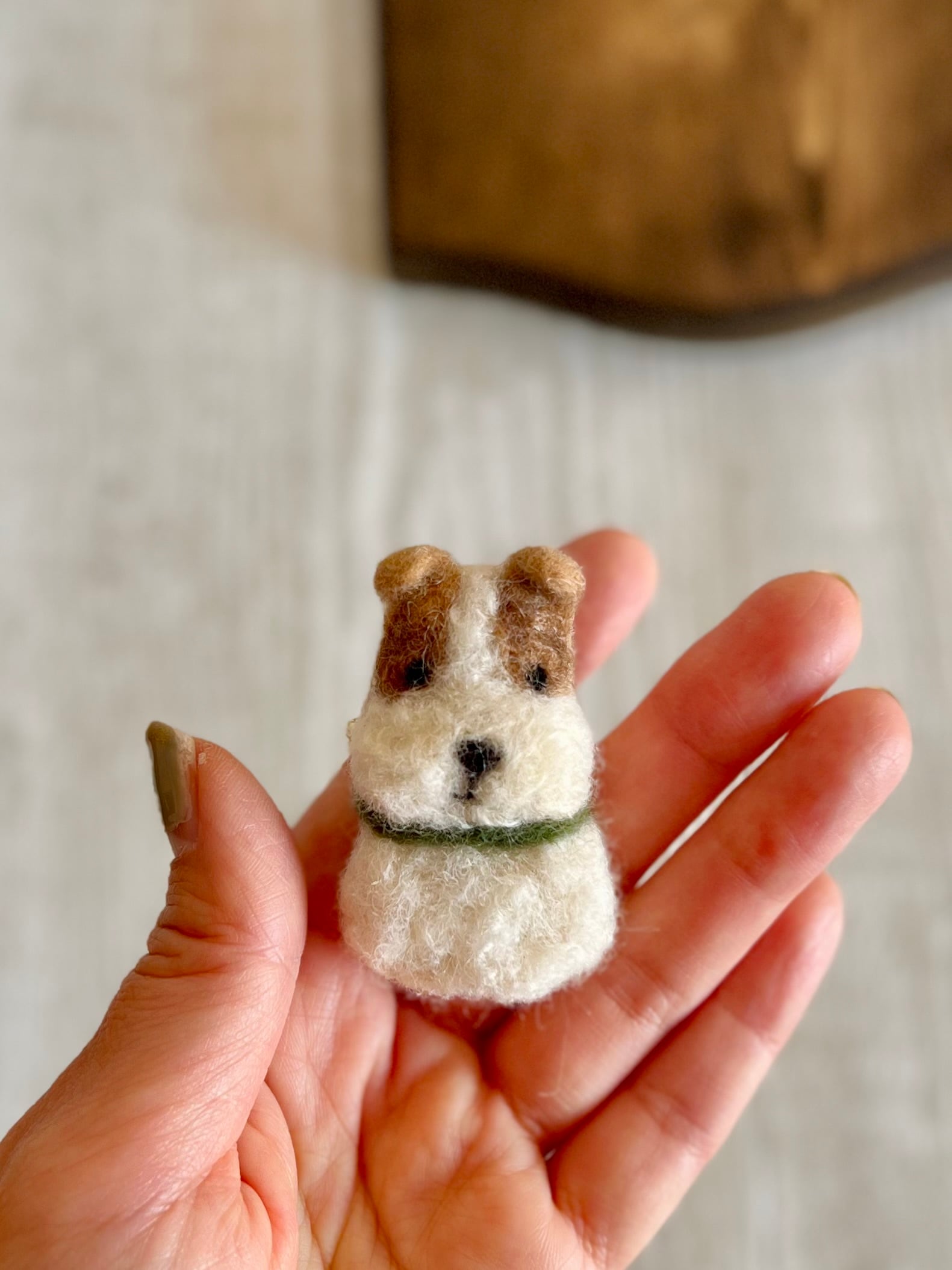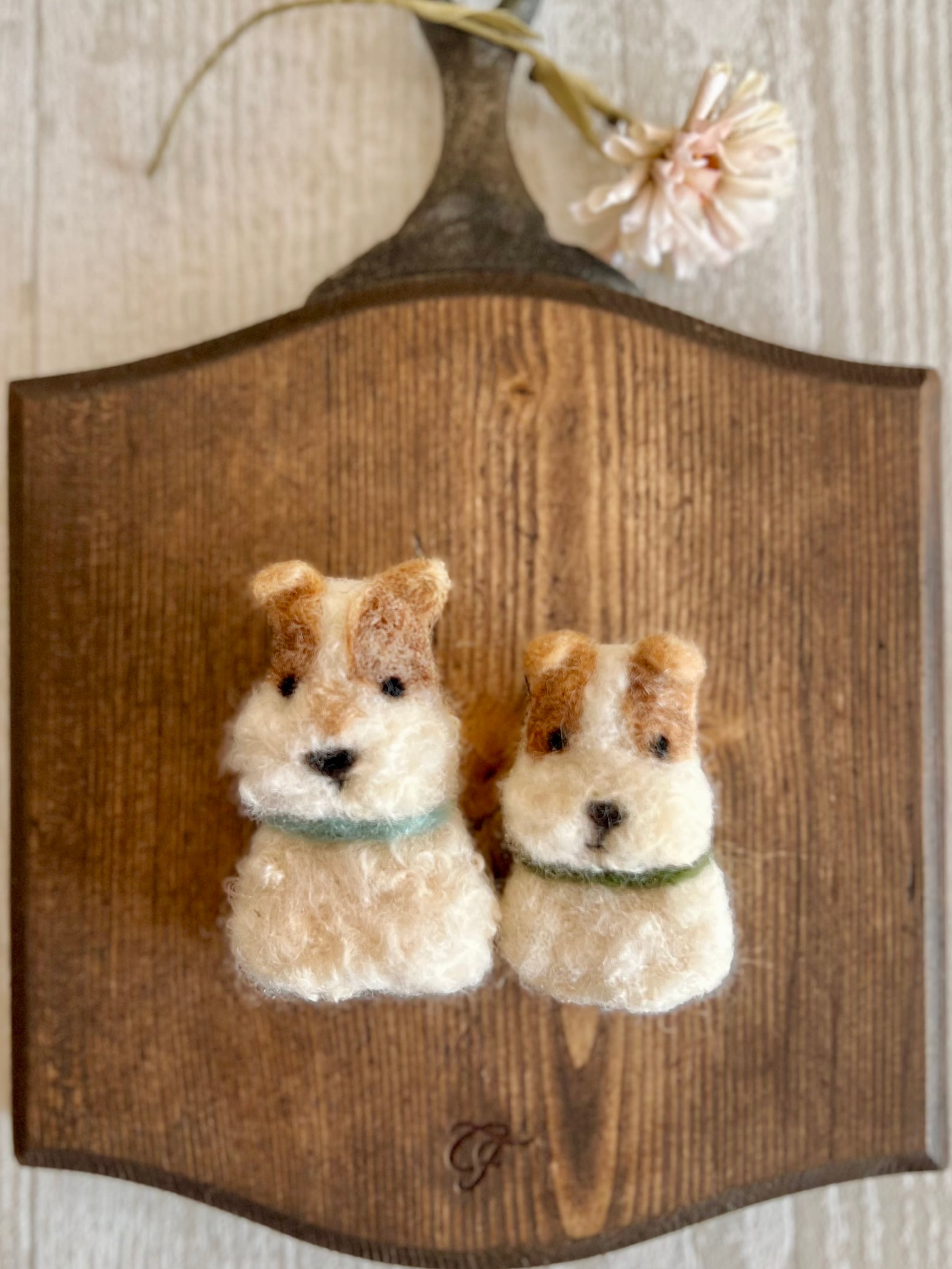 羊の原毛の繊細なカールとナチュラルな色合いをそのまま活かして生まれた犬のブローチです。