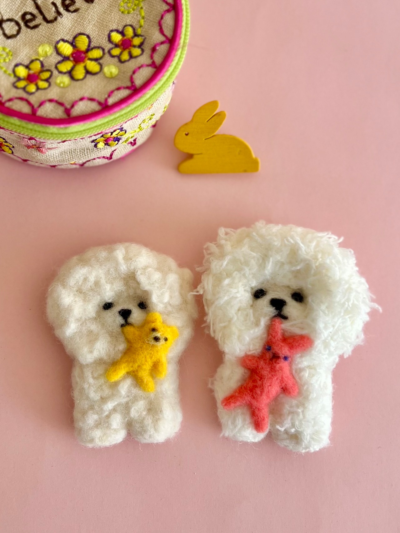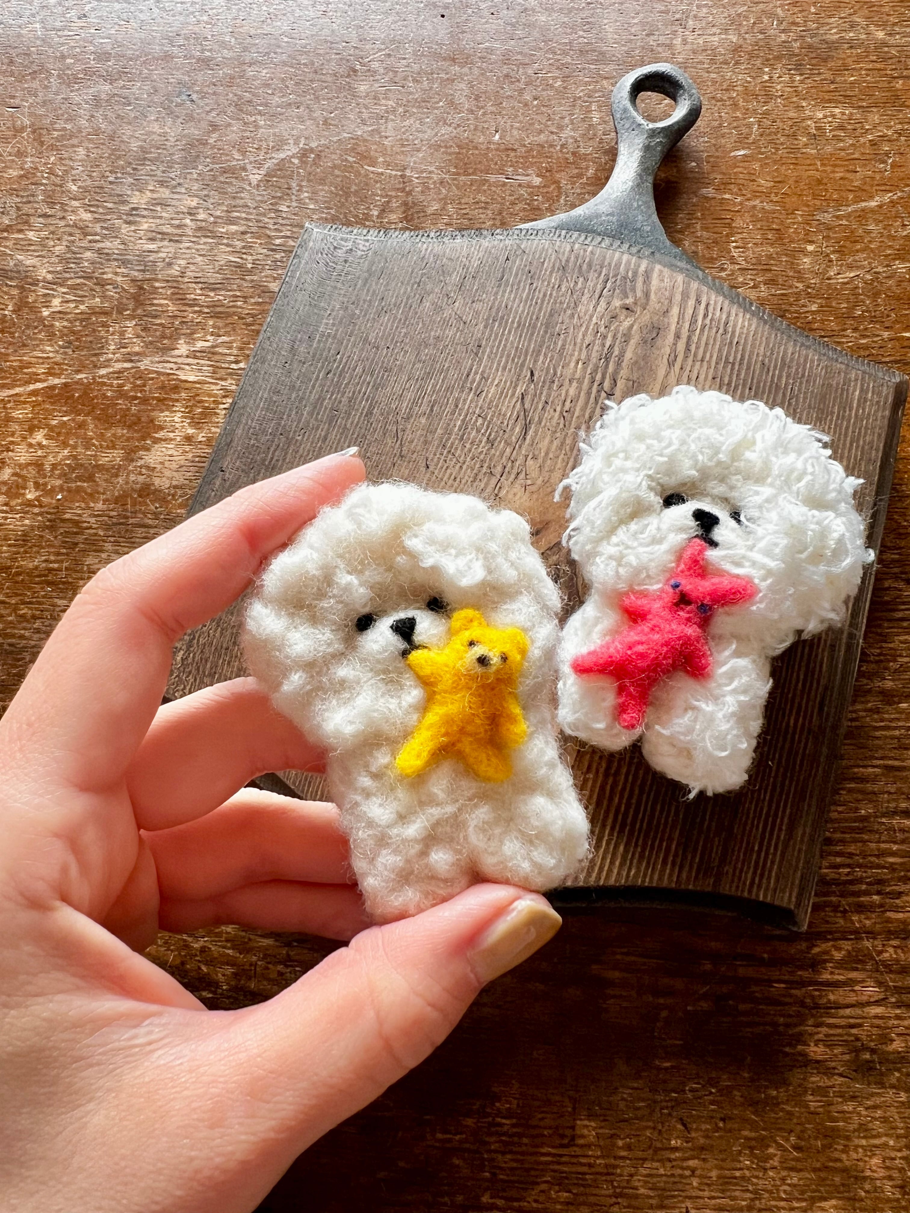 羊のようにモフモフとしたビジョンフリーゼ犬のブローチです。