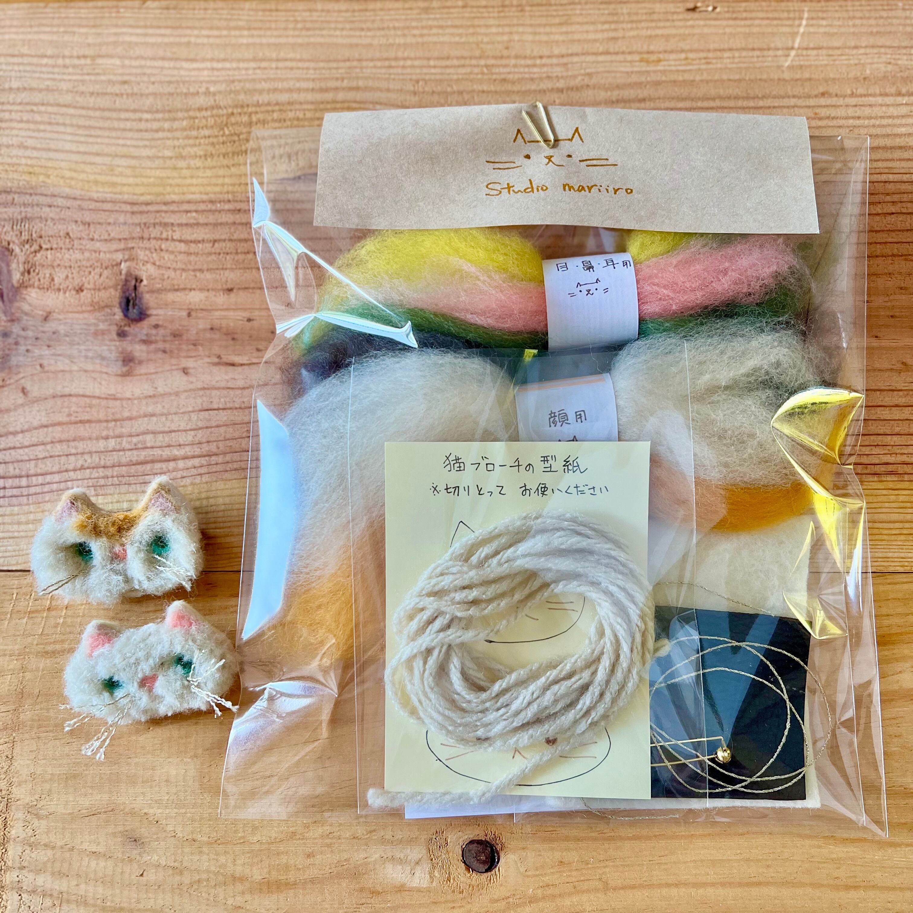 ●羊毛・毛糸(単色と柄ありの2パターン)と型紙、資材(フェルト台紙、革、ブローチピン1つ)は含まれています。追って配送(日本国内のみとなります)にてお届けします。