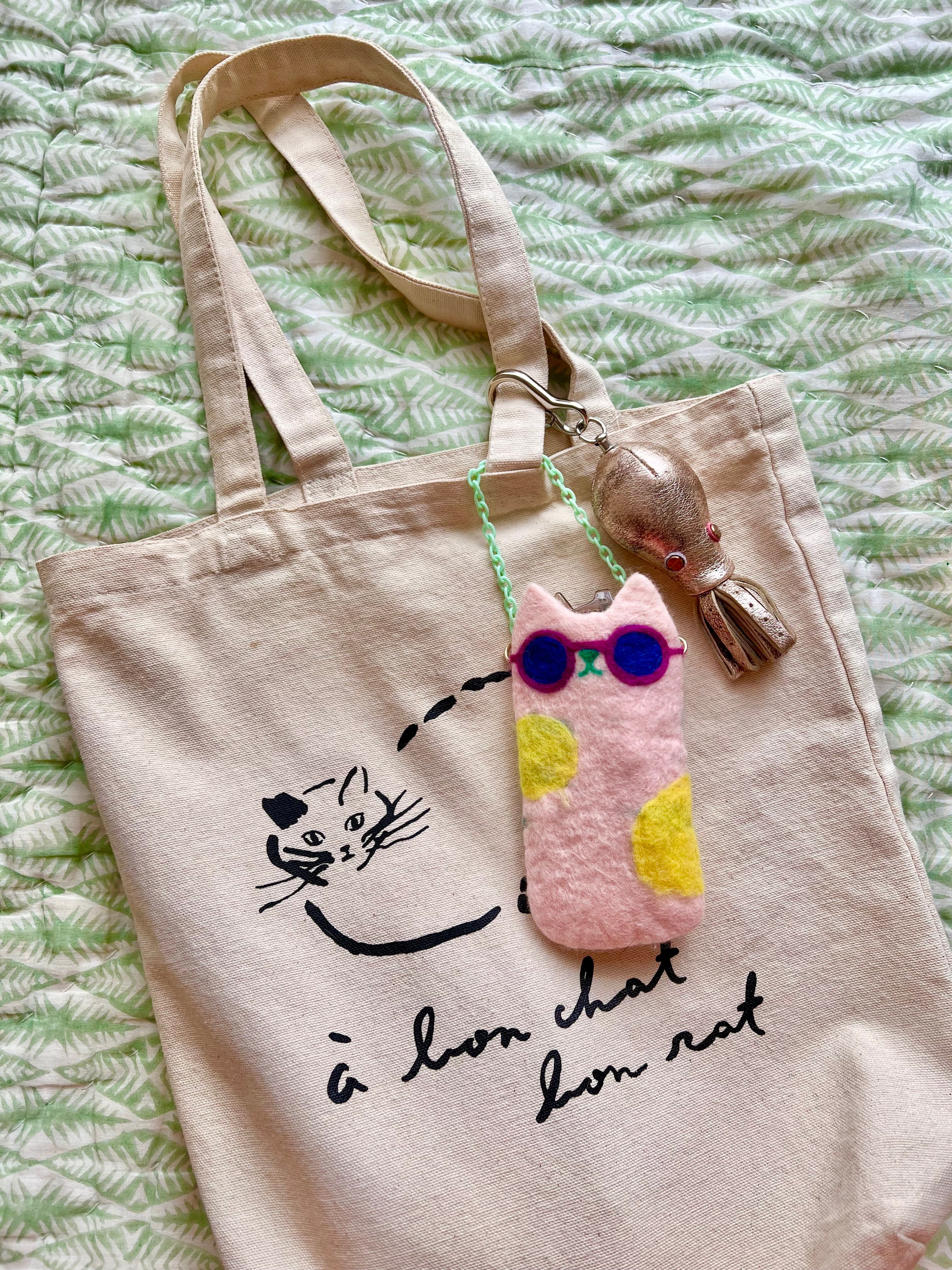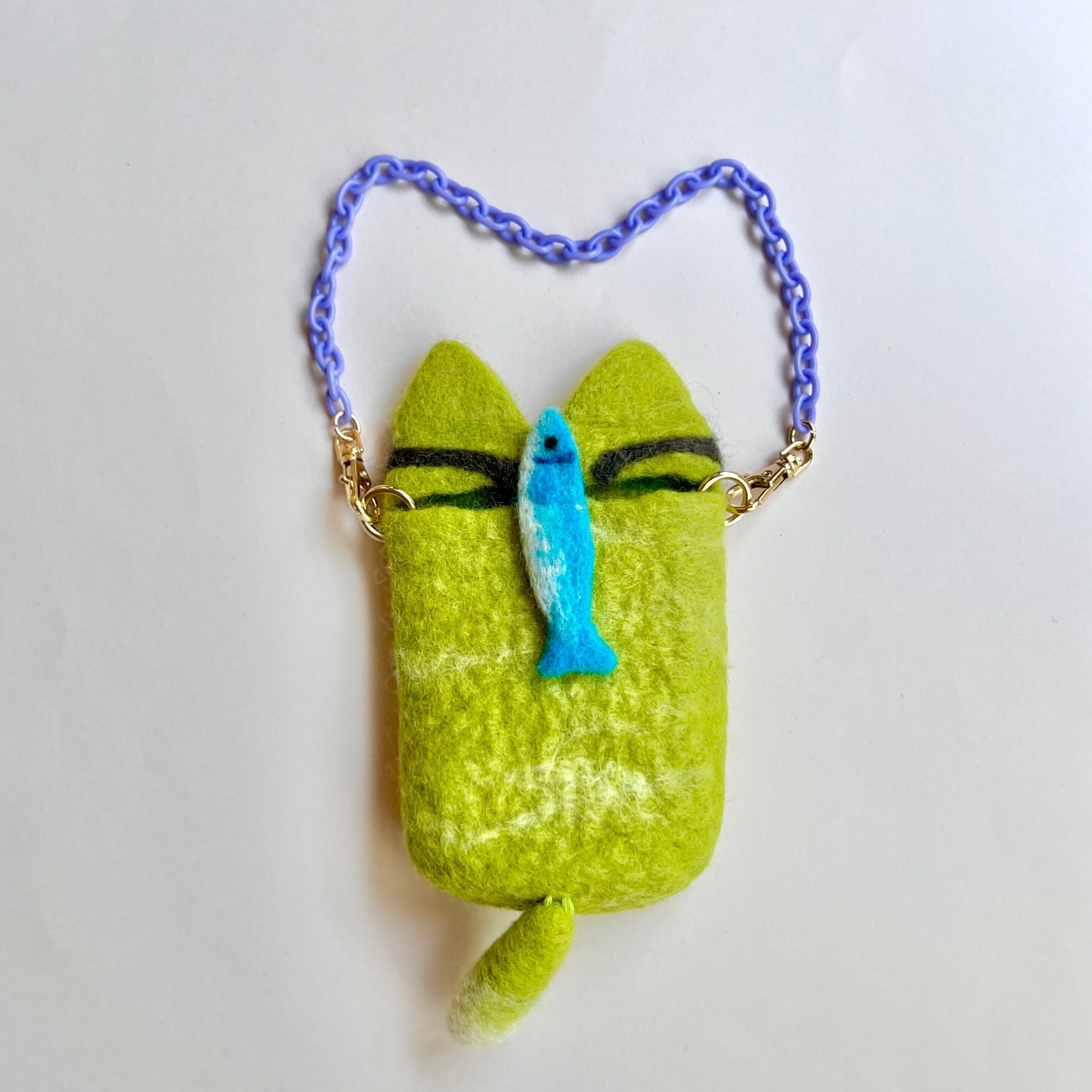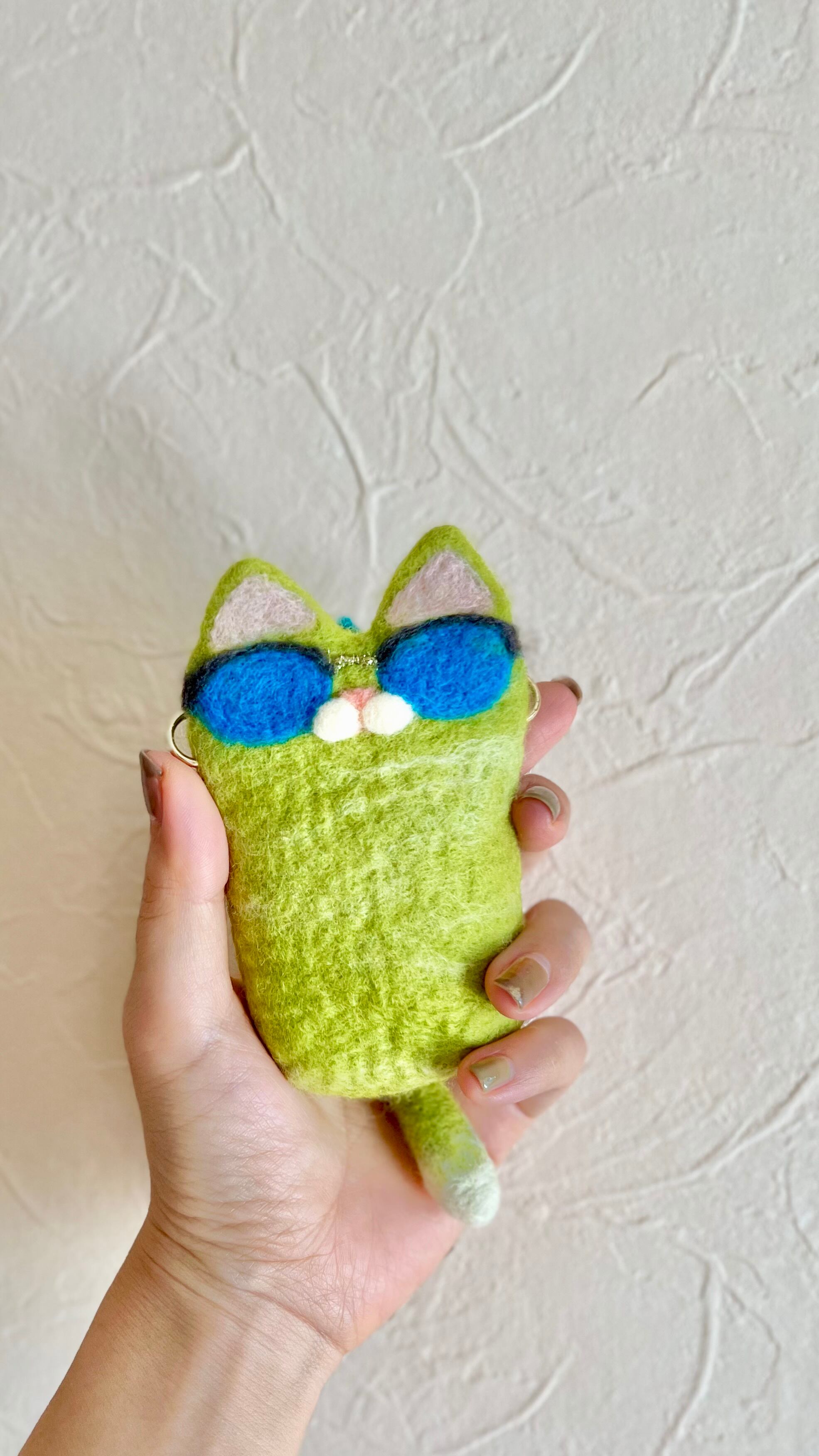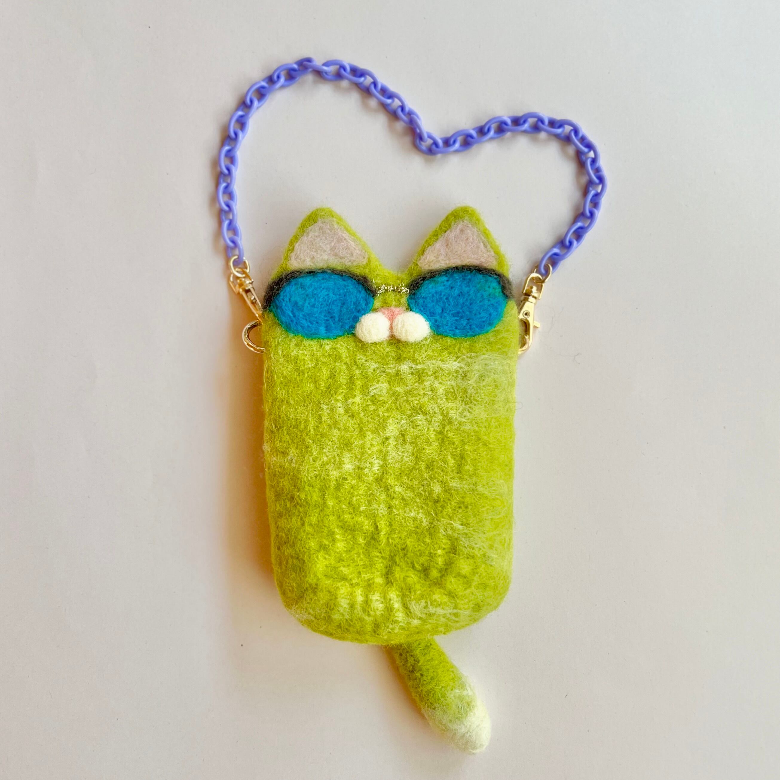 (作品)サングラス猫ポーチ「ニナ(緑)」
